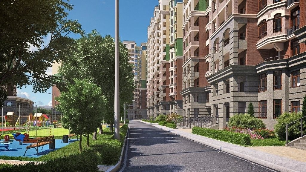 За закрытых для въезда автомобилей дворах будут оборудованы детские игровые и спортивные площадки. Застройщиком планируется строительство школы и двух детских садов.