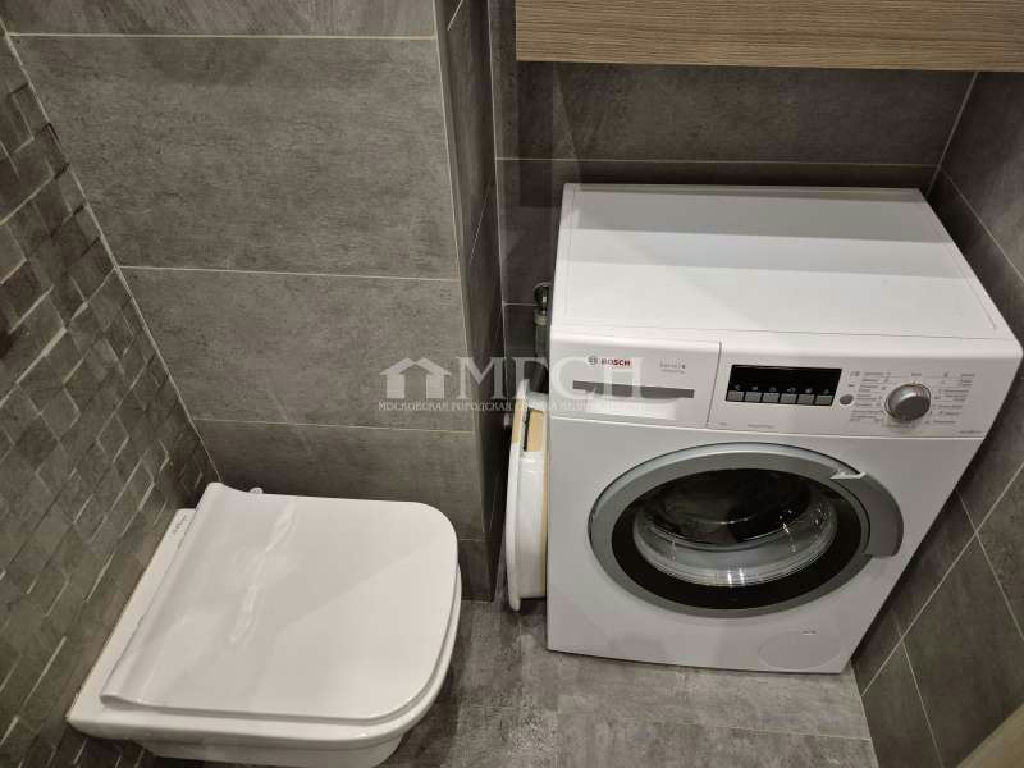 Ванная комната совмещена с туалетом: полы и стенки испанская плитка, пол с подогревом, подвесной потолок с контурной подсветкой, ванная (ROCA) смеситель с терморегулятором, унитаз со встроенным (скрытым бочком), раковина, стиральная машина BOSСH, шкафы.